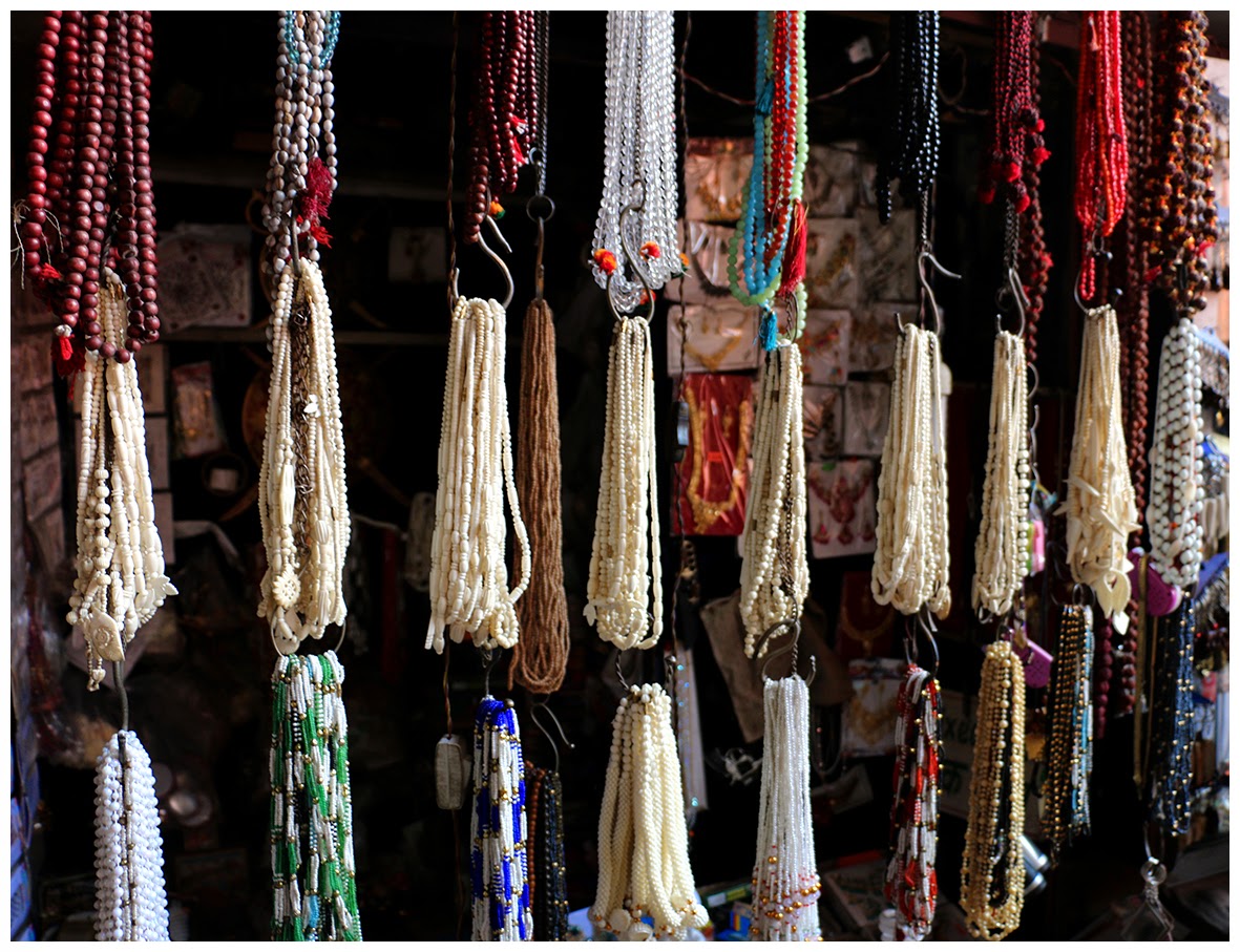 An small necklaces market that you found in Red Fort in Delhi. For indian women necklaces are a piece of clothing firsthand |